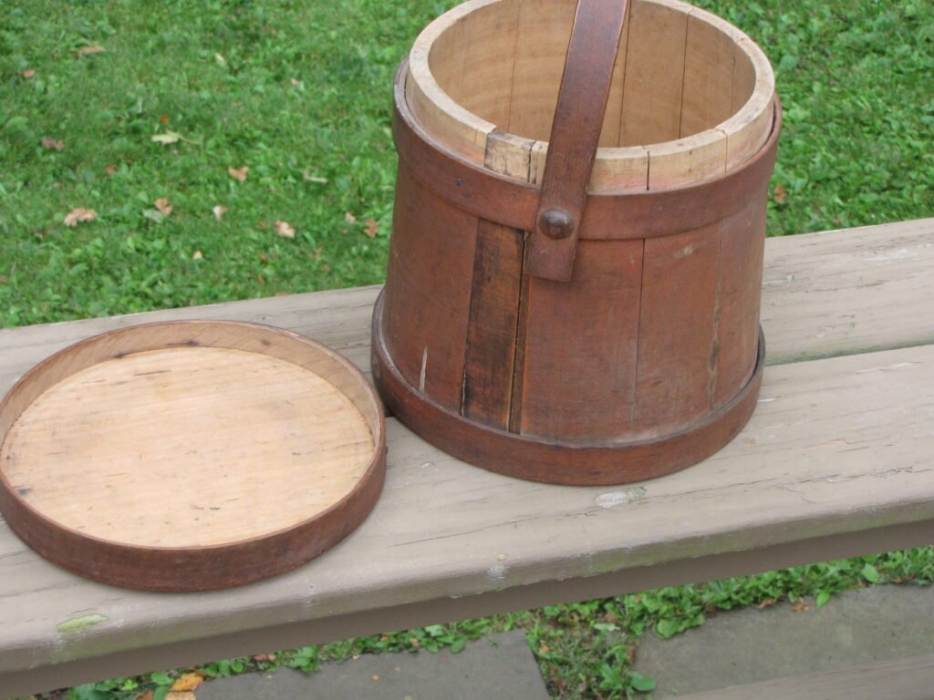 made, staves are tight with one small stave replacement, dimension 9” high, 13’ top of handle